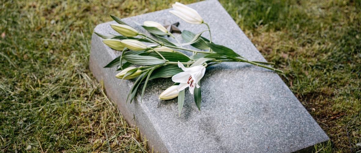 Les fleurs sur un monument funéraire permettent d’exprimer le deuil et de rappeler le souvenir de la personne décédée.